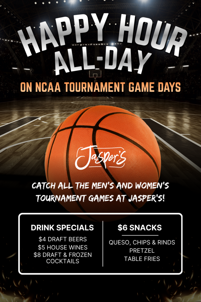We’re celebrating the College Basketball Tourney at Jasper’s! 🏀🍻