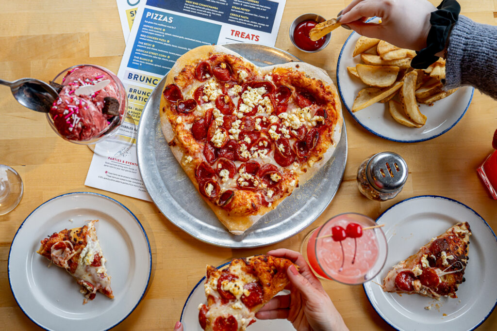 Join us February 13–15 for family-friendly specials made to share, including our heart-shaped pizza topped with pepperoni, goat cheese, mozzarella, and a hot honey drizzle ($15), plus a sweet finale with our Red Velvet Sundae featuring brownie bites, red velvet gelato, chocolate sauce, and sprinkles ($10).